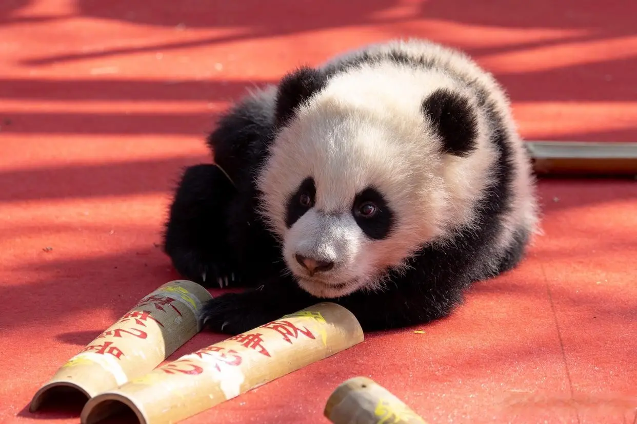 在成都大熊猫繁育研究基地安全配资炒股,2025级新生大熊猫幼崽亮相新春主题活动(2月4日摄)。新华社记者 胥冰洁 摄