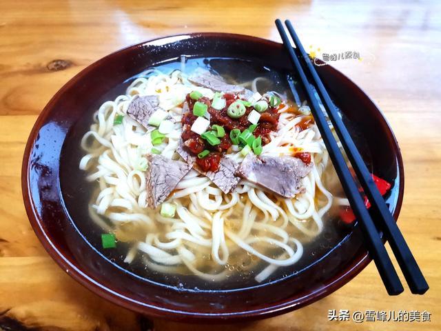 2,新鲜面条放入开水锅里,煮熟后捞出,舀入牛肉汤,把牛肉片放上,适当来点辣椒酱,上桌即成。